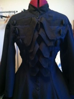 The dress started months ago, when I made a mock up and fitted the top portion of the dress. Which then turned into the new black velvet jacket for this year :)http://cursewordsandcrinolines.blogspot.com/2012/11/black-velvet-jacket.html?