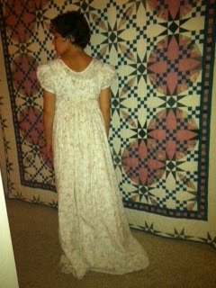 I also opted to make a petticoat as the dresses are thin and I want to have a good full skirt. I might go back and cord it in the future but for now it is plain. I made it kind of like a jumper, with a bodice back but no front just a drawstring at the waist line to hold it in. Its simple, easy to wear and adds very little extra bulk. It is a design I had seen in another blog, only now I don't remember where and since i didn't save it i cant find it again to give that other costumer credit, sadly.